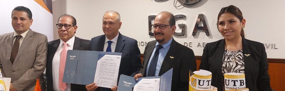 La Dirección General de Aeronáutica Civil – DGAC y la Universidad Tecnológica Boliviana – UTB firmaron el martes 21 de marzo de 2023, un convenio interinstitucional que tiene por finalidad que egresados de dicha casa superior de estudios puedan realizar pasantías, trabajo de grado, entre otras en la entidad aeronáutica.
